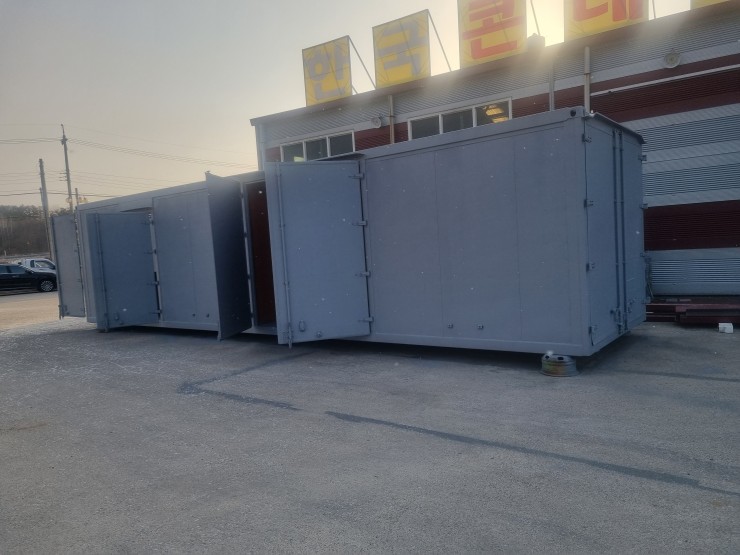 벽,천정 알루미뇸철판,내부 스텐철판,칸막이 가운에 한곳,전기시설,바닥 아주 튼튼합니다.